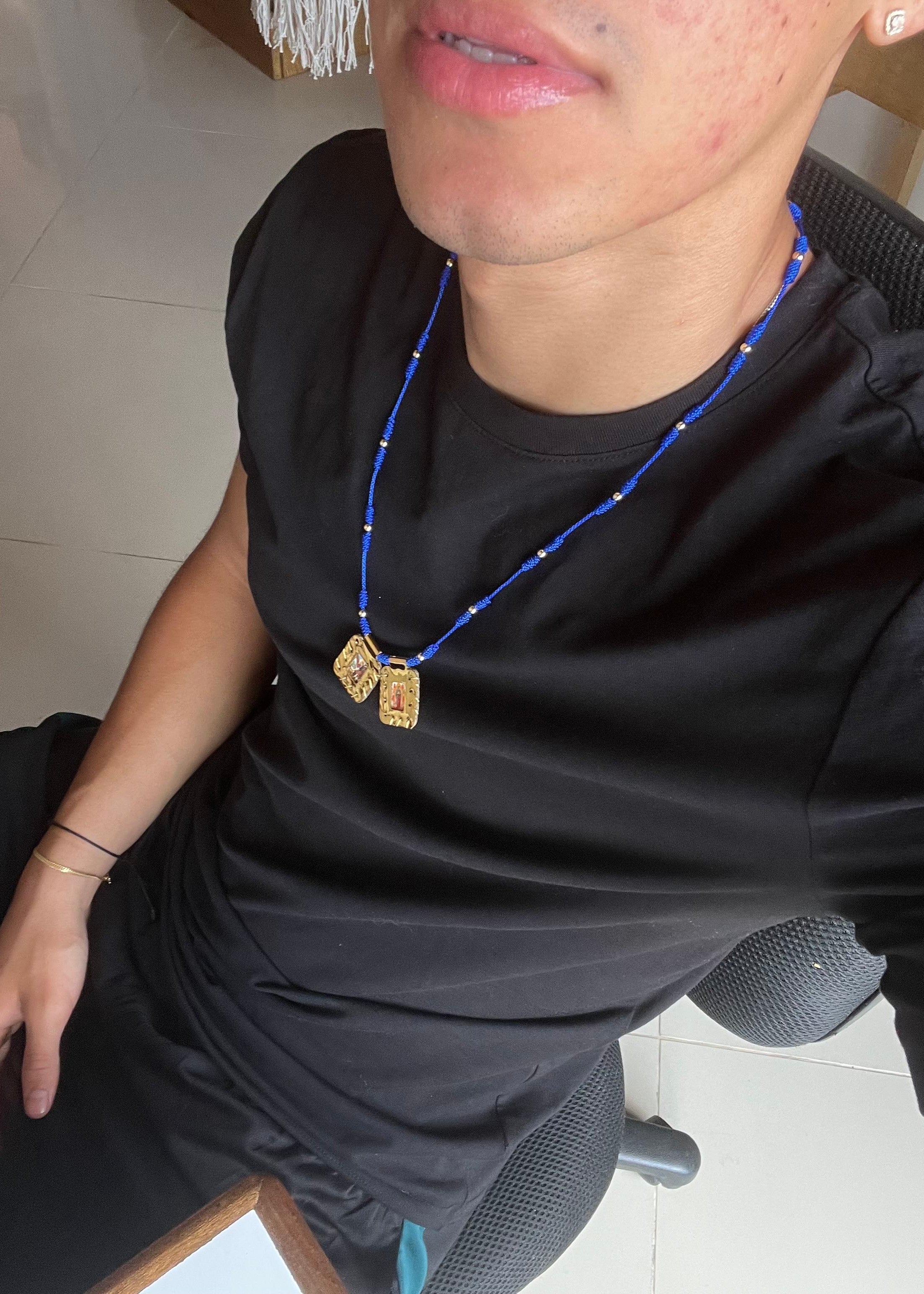 Nuestro escapulario cuenta con una medida estándar de 65 cm de largo, ideal tanto para hombres como para mujeres, ya que queda a la altura perfecta del pecho. Las placas tienen un tamaño de 2 cm de alto por 1.5 cm de ancho, logrando un equilibrio perfecto entre presencia y comodidad para uso diario.