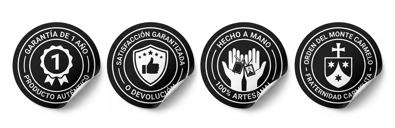 Te ofrecemos 1 año de garantía por cambio de tonalidad en los balines de tu escapulario. Además, cuentas con garantía de satisfacción: si al recibir tu producto no cumple con la calidad esperada, te devolvemos tu dinero.